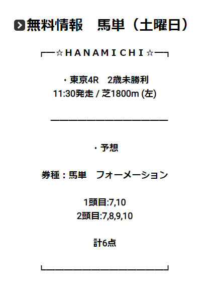 東京4レースの予想は馬単6点予想。