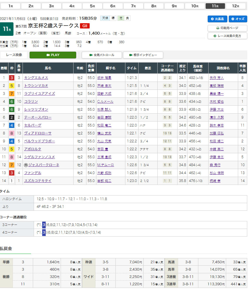【11/5㈯ 東京11R 京王杯2歳S】