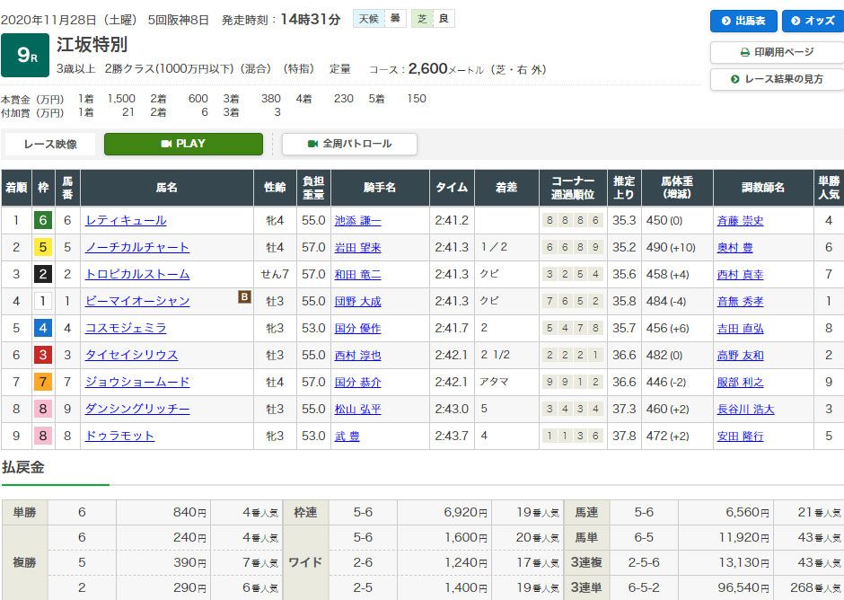 同じ競馬情報会社でも【勝ちうま常勝理論】は11月の無料情報で60万円の一撃的中がありましたし【馬貴族】は的中本数32本、11月無料情報的中総額は77万9970円と稼げるサイトがあるので相性などもあるかもしれません。