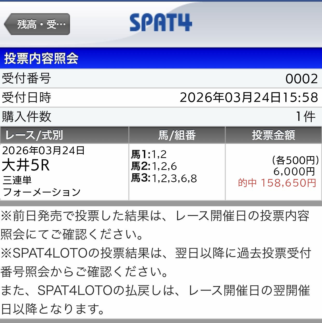 重賞の3連単無料予想ではなかったけどしっかり万馬券的中で、推奨金額通り馬券購入して4万530円払い戻し! たまらない的中まじでありがとうございました!