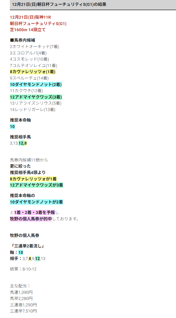 有馬記念の無料予想も期待しています、見解付きだから凄い信用できますね、納得できるし確信つく予想毎週楽しみにしています!