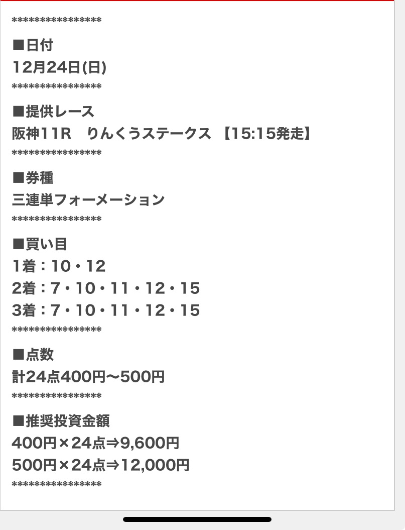 約束された万馬券の買い目が届く!
