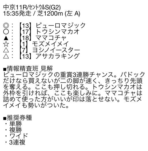 産経賞セントウルステークス(G2)無料情報3連複BOX買いであと一歩で万馬券となる96.4倍的中貰えました。
