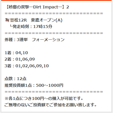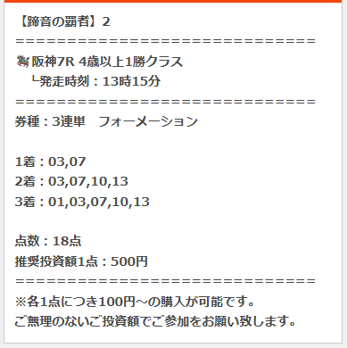 思わず叫んでしまった的中!でした、久々にこんな馬券獲りました、ウォッカがダービー勝ったぶりくらいだから10年以上昔以来の的中、まじで感謝、ありがとうございます。11人気1着、13人気2着、オッズが跳ね上がり60万馬券決着 100円でしか買ってなかったけど62万250円になりました。 今週も絶対に使います。