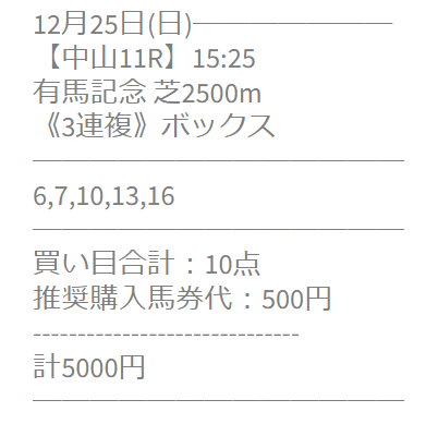 有馬記念の買い目全然だめだったじゃん。